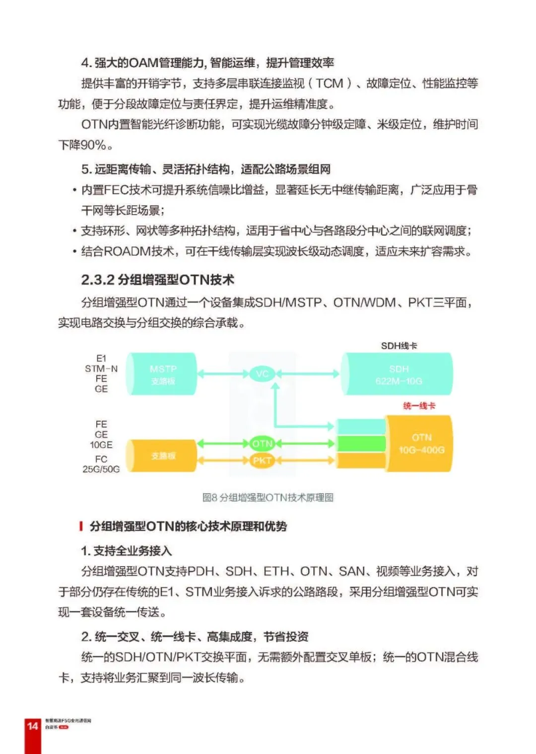 关键技术:以 OTN(含小颗粒)、分组增强型 OTN、ASON、PON 为核心,搭配智能运维技术,形成技术体系: