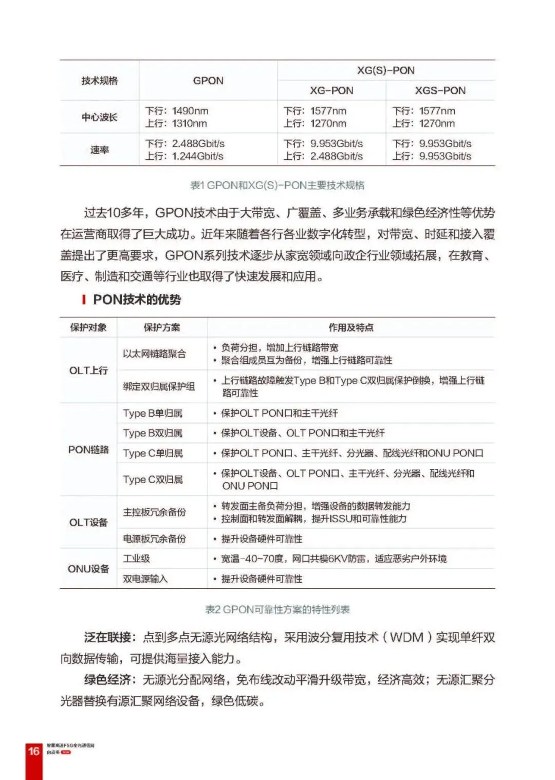 PON 技术:以 GPON/XG (S)-PON 为主,具备泛在联接、绿色经济、确定性低时延特点,适配路侧、隧道等接入场景;