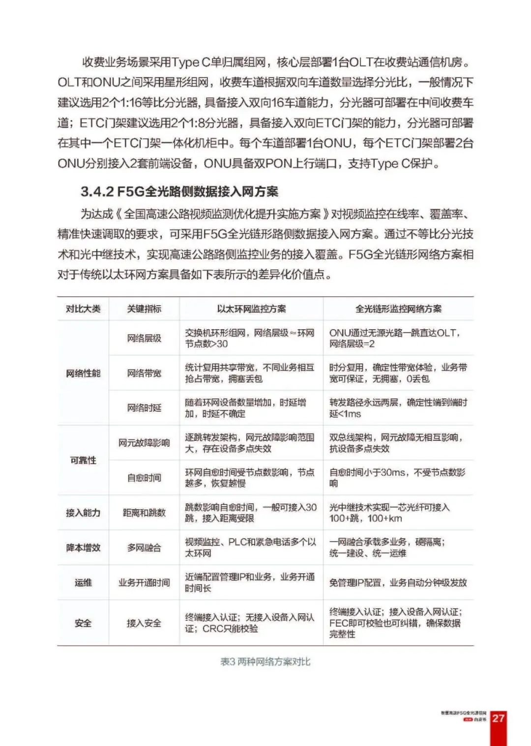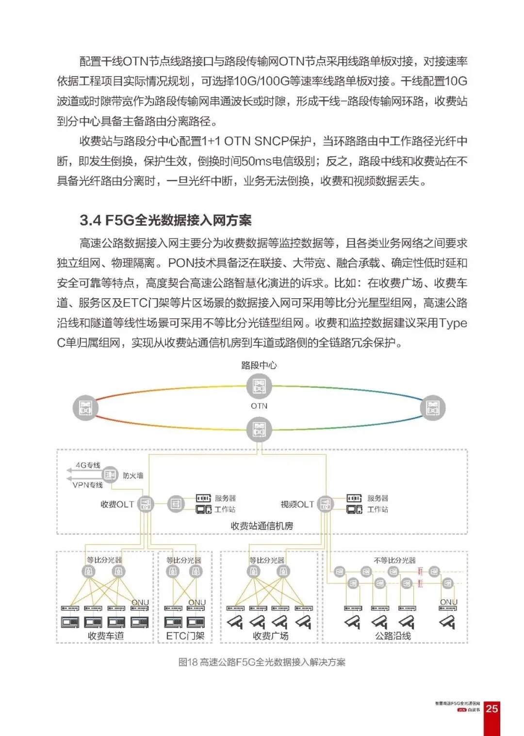 全光数据接入网:基于 PON 技术,细分收费、路侧、隧道、服务区四大子方案,采用 Type C 保护组网,实现硬隔离、低时延、全链路冗余,适配不同接入场景的业务需求;
