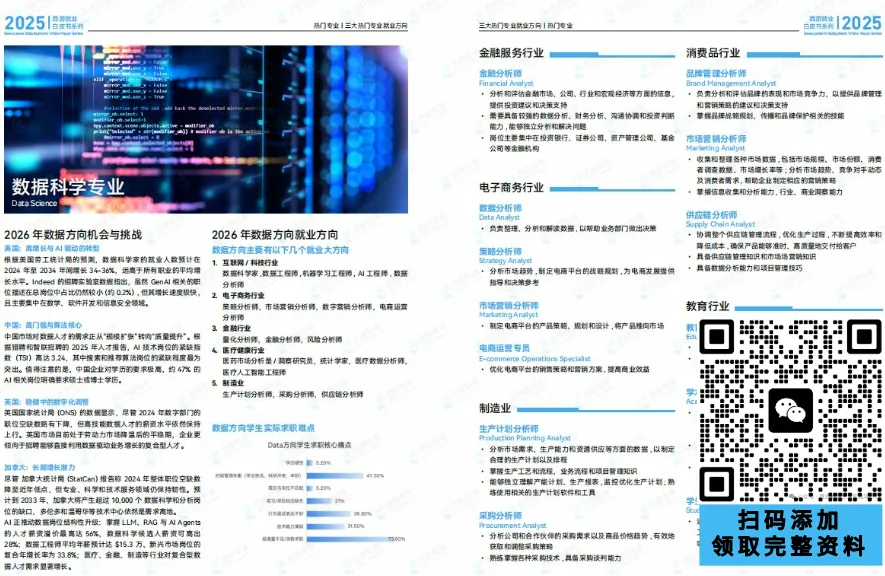 里面包含:最新就业趋势、行业变化、专业分析、AI影响路径、求职难点拆解