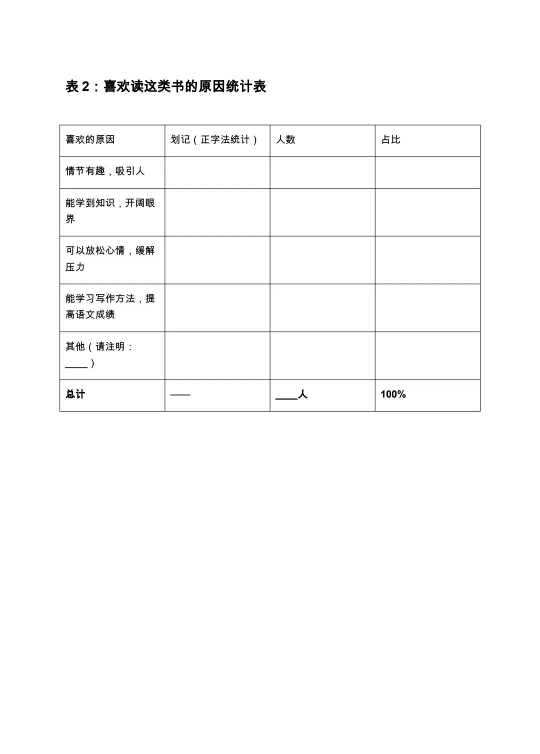 (如情节有趣、增长知识、放松心情等)