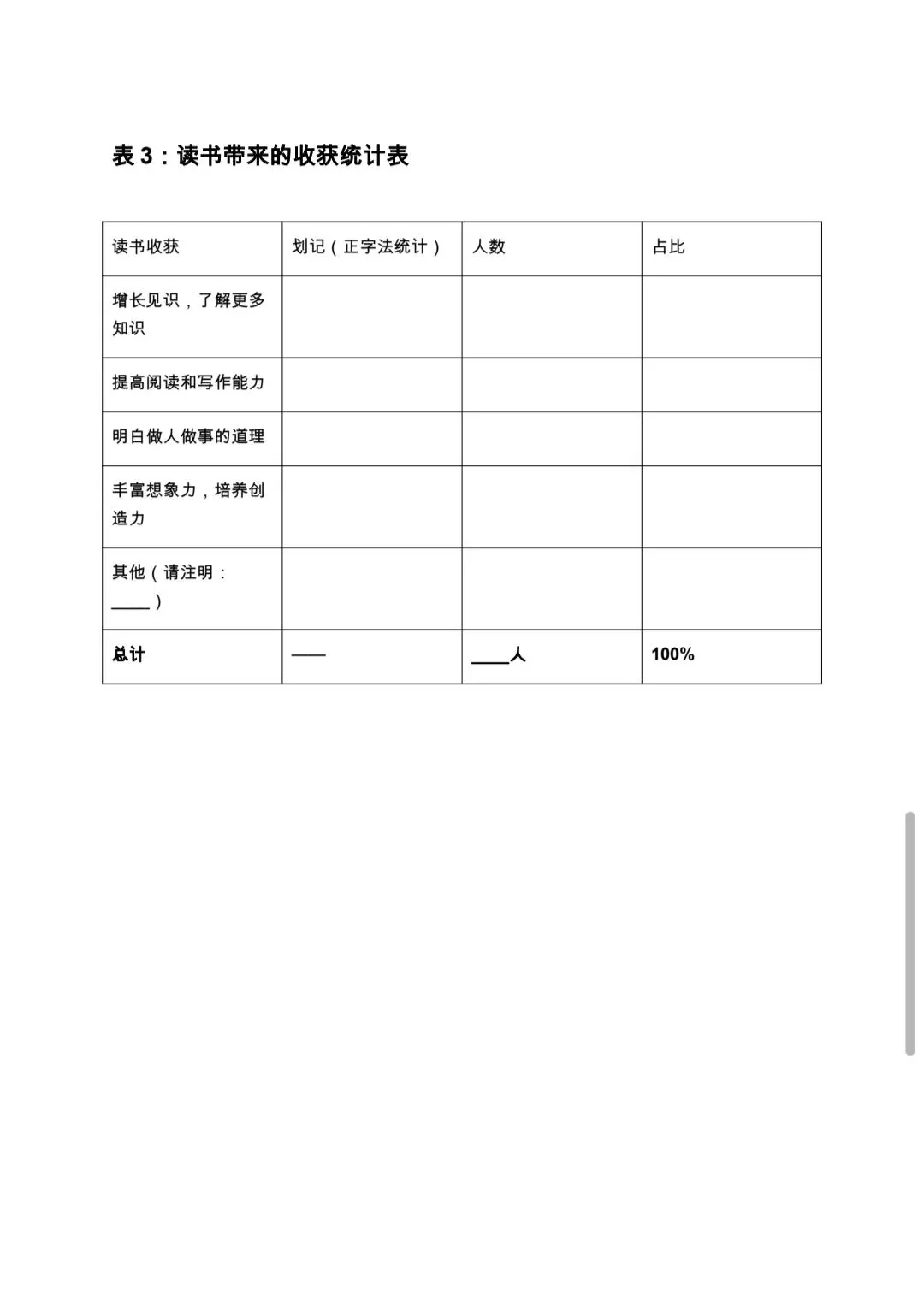 (如提高写作、明白道理、开阔眼界等)