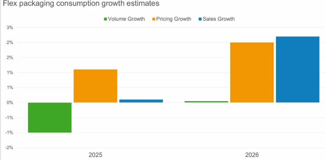 2025-2026年欧洲软包装消耗量/价格/销售额增速预测
