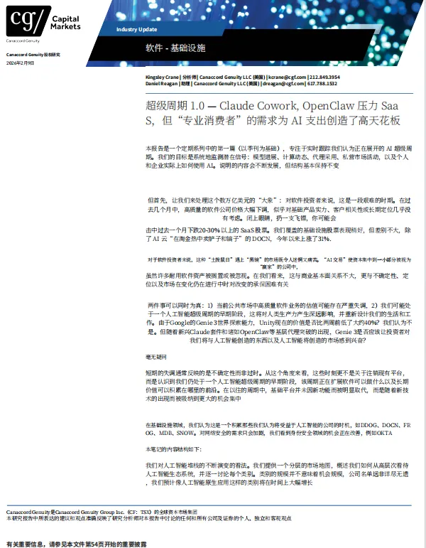 超级周期 1.0 — Claude Cowork, OpenClaw 压⼒ SaaS,但“专业消费者”的需求为 AI ⽀出创造了⾼天花板.pdf