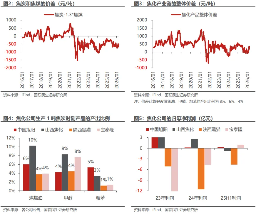 当前焦炭行业利润见底,油价上升和化工品供给收缩带来焦化副产品利润增厚,焦化公司业绩有望实现底部反弹;同时,随着国际局势的不确定性提升,煤化工的战略地位提升,焦化副产物品种多、产品高端的公司有望实现估值提升。建议关注:1)中国旭阳集团:主业成本优势较强,副产品产量规模大、收入占比高,化工品价格上涨阶段公司利润弹性大;2)山西焦化:副产品收入占比较高,且公司参股中煤华晋,具备一定自供焦煤的成本优势,中煤华晋里必煤矿有望于2026年投产;3)基本盘稳定的美锦能源、副产品收入占比较高的陕西黑猫,建议关注其副产品利润增厚带来的业绩拐点。