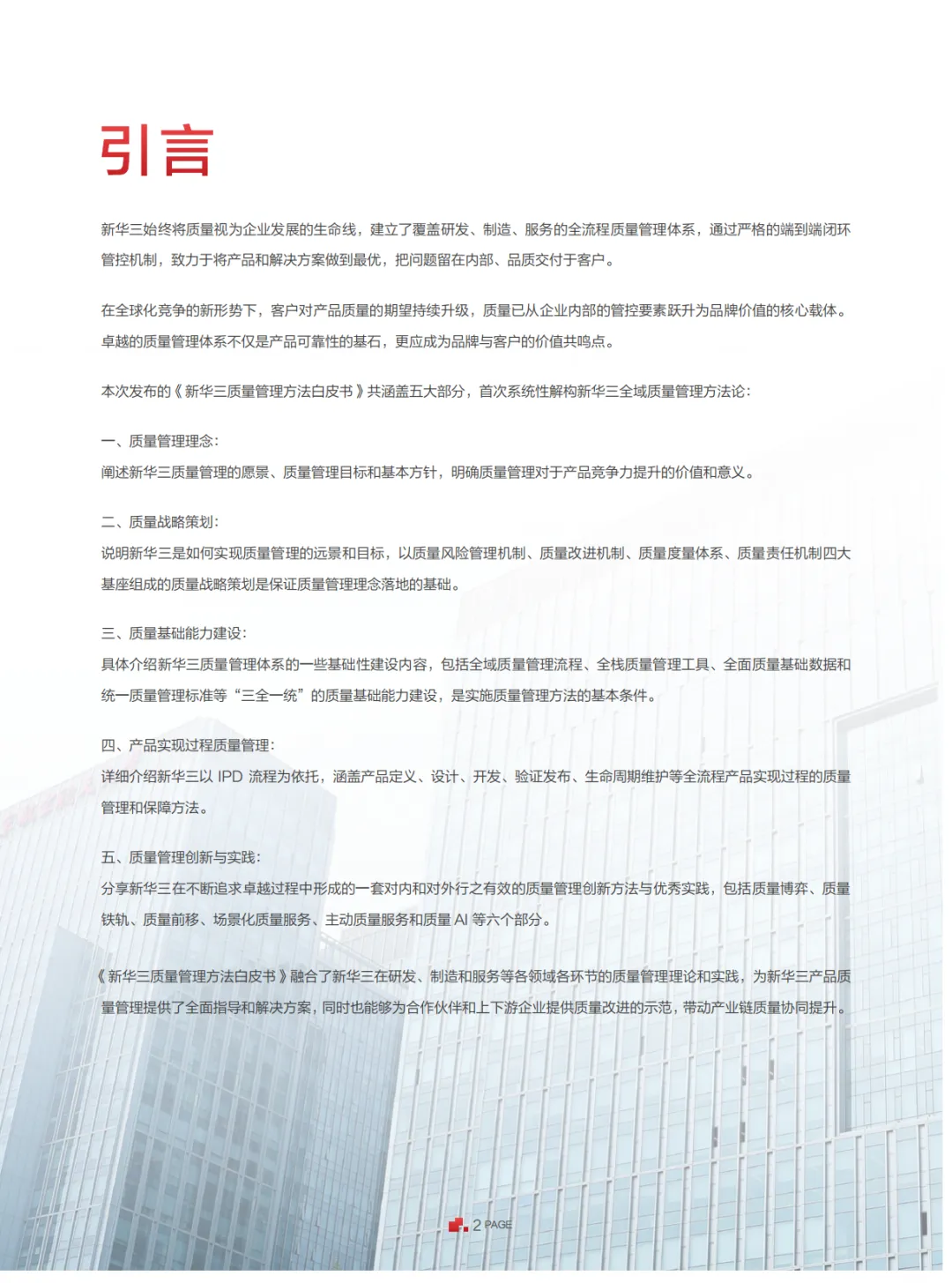《新华三质量管理方法白皮书》系统阐述了新华三集团的全生命周期质量管理体系,核心内容概括如下: