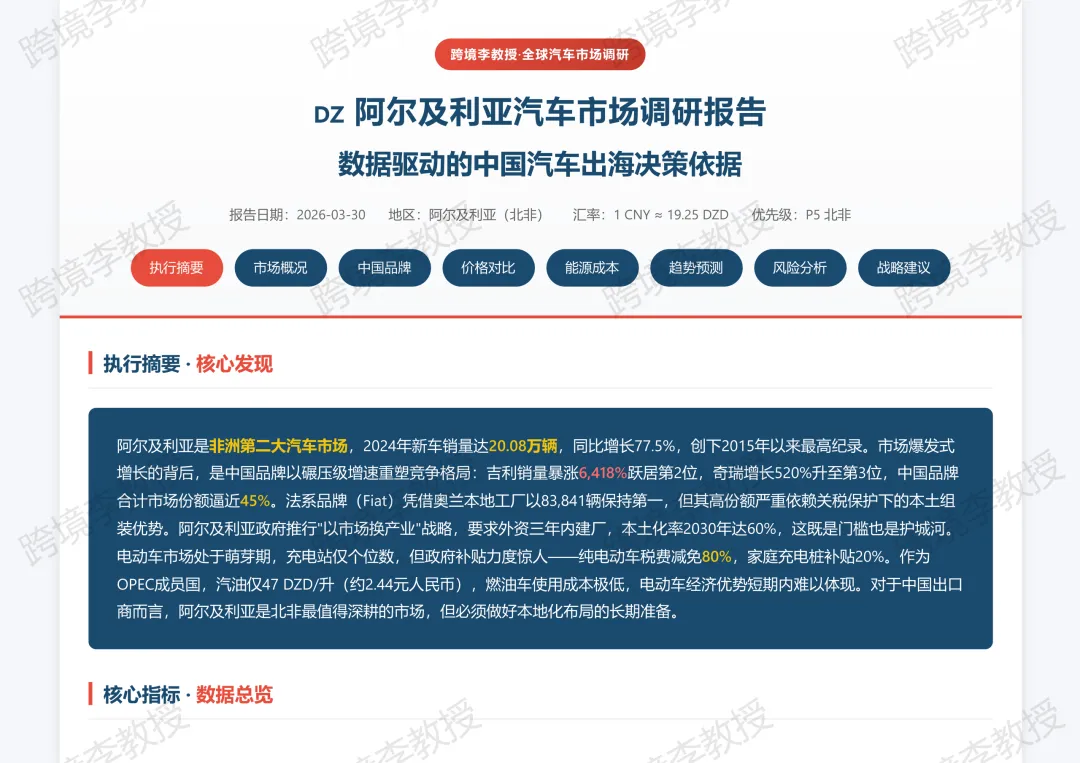 阿尔及利亚汽车市场调研报告数据驱动的中国汽车出海决策依据