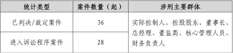 在2025年度,上市公司全年合计公告刑事相关案件64起,其中已判决/裁定的案件36起、进入诉讼程序的案件28起。