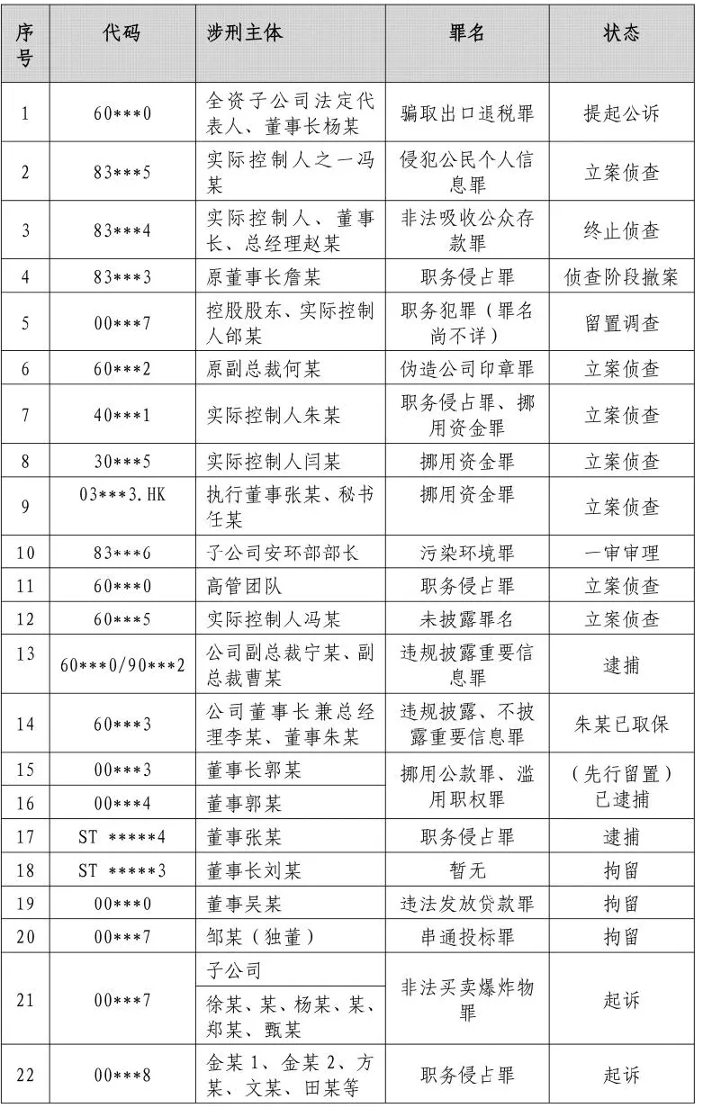1.核心主体风险突出:实控人、董监高等“关键少数”合规缺位,易引发多重刑事风险,且追责范围向子公司、中介机构延伸,风险波及面扩大。