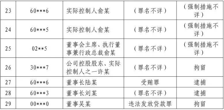 刑事风险部分:进入刑事诉讼程序及已判决的案件共64起,已判决或裁定的36起,进入诉讼程序的28起。从犯罪类型来看,经济类犯罪17起,占比26.56%;职务类犯罪16起,占比25.00%;证券类犯罪15起,占比23.44%;其他类犯罪7起,占比10.94%;未公布罪名9起,占比14.06%。