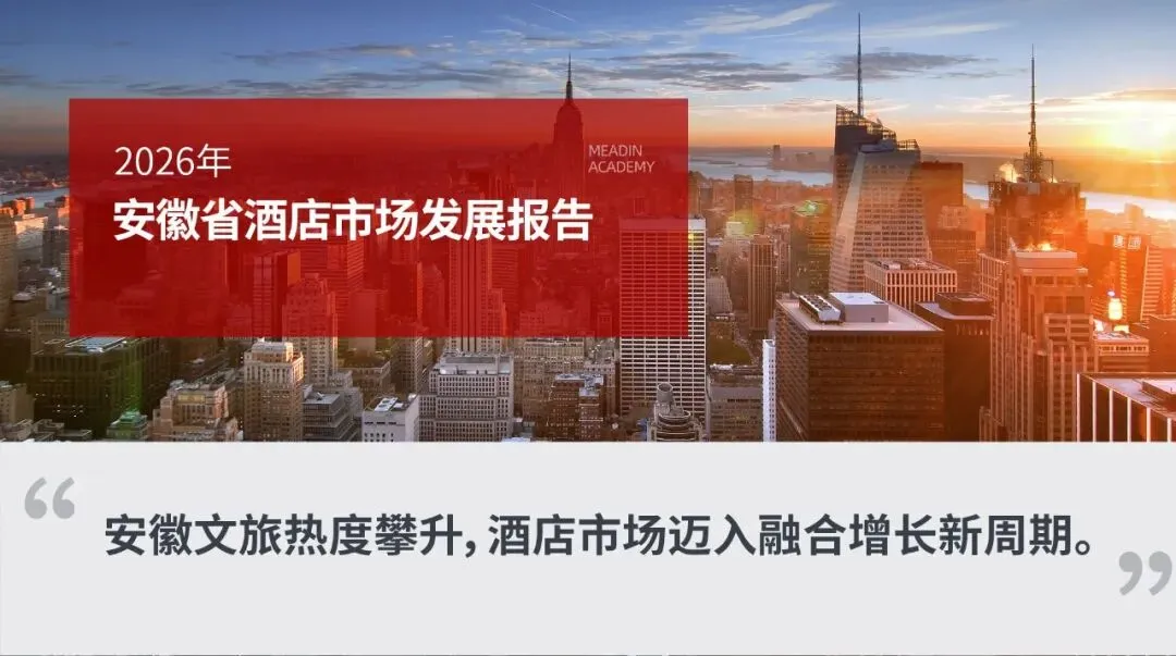 依托安徽文旅强劲增长与县域消费持续释放,全省酒店市场仍有较大拓展空间,未来增长动力将更多来自结构优化、品质提升与差异化竞争,各区域需立足自身禀赋找准方向、错位布局。