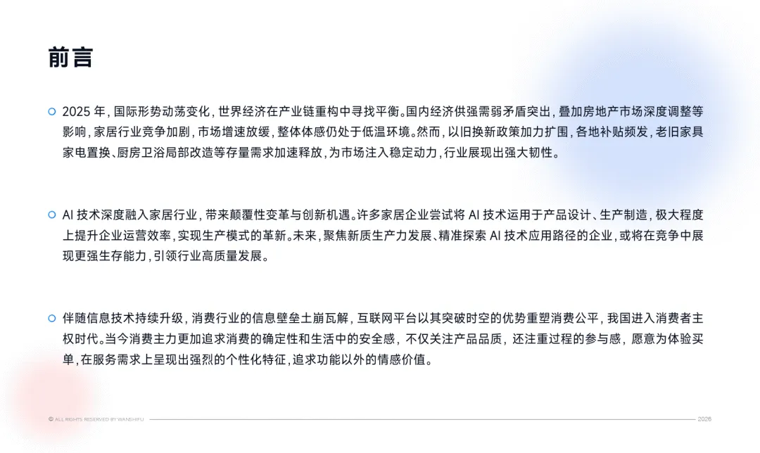 ,让家居服务市场展现强劲韧性,成为行业第二增长曲线。同时 AI 技术深度融入,推动行业向数字化、智能化转型,消费主权时代到来,用户更注重服务体验与情感价值。