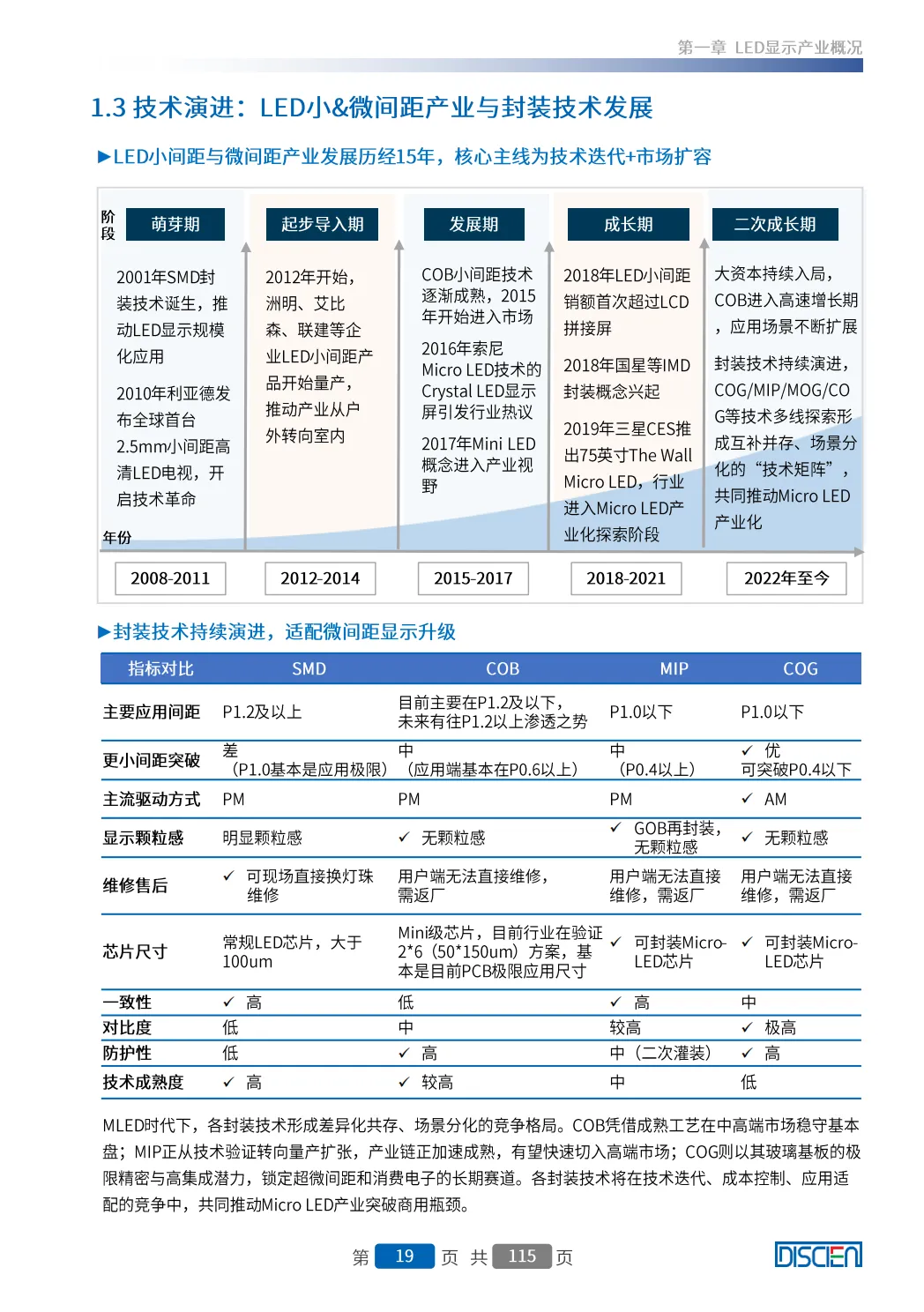 COB主导微间距市场,MIP、COG、MOG等技术差异化共存。