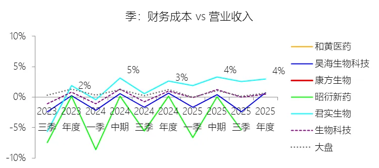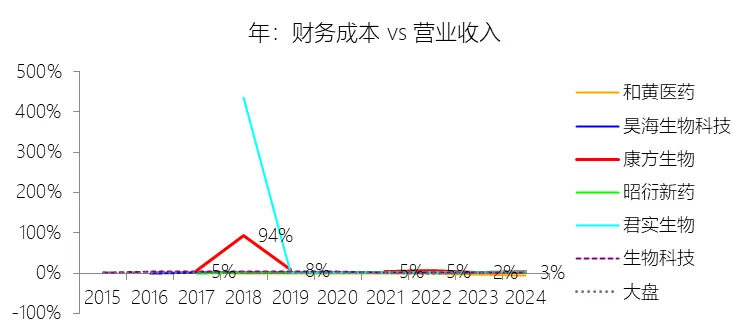 财务费用:2025年,康方生物的财务成本为1.31亿元,同比增长91.88%,与营业收入的比例为4.29%,同比上升1.07个百分点;2015-2024年(十年),此项合计为2.27亿元,平均比例为2.90%,比生物科技行业的均值高1.36个百分点,长期呈下降趋势。