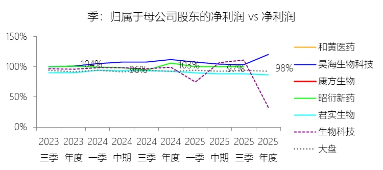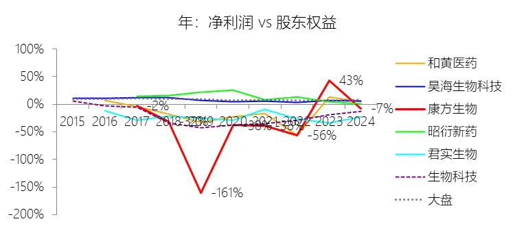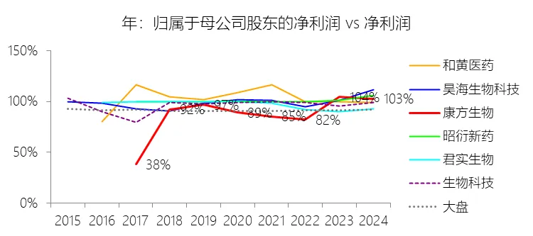 归属于母公司股东的净利润:2025年,康方生物的归属于母公司股东的净利润为-11.13亿元,绝对值同比增长116.33%,与净利润的比例为97.57%,同比下降5.11个百分点;2015-2024年(十年),此项合计为-23.88亿元,平均比例为77.78%,比生物科技行业的均值低20.67个百分点,长期呈上升趋势。