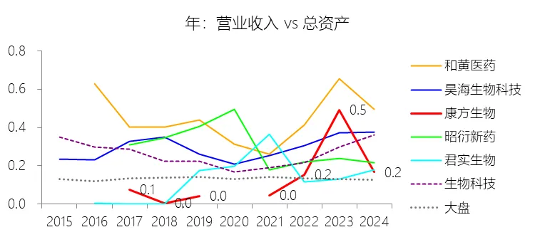 总资产周转率:2025年,康方生物的总资产周转率为0.2次,同比上升0.02次;2015-2024年(十年),平均总资产周转率为0.2次,比生物科技行业的均值低0.05次,长期呈上升趋势。