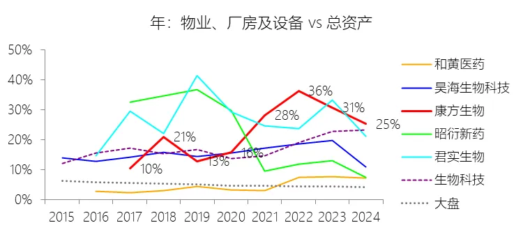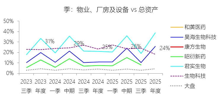 物业、厂房及设备:2025年末,康方生物的物业、厂房及设备为38.80亿元,对比年初增长20.11%,与总资产的比例为24.25%,同比下降1.08个百分点;2015-2024年(十年),此项与总资产的平均比例为26.75%,比生物科技行业的均值高8.29个百分点,长期呈上升趋势。