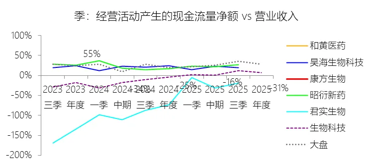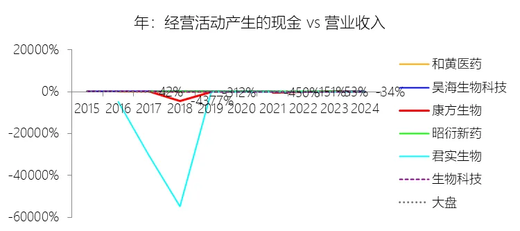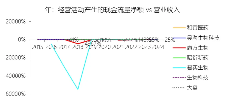 经营活动产生的现金:2025年,康方生物的经营活动产生的现金缺数据,与营业收入的比例无效;2015-2024年(十年),此项合计为-15.78元,平均比例为-20.17%,比生物科技行业的均值高2.66个百分点,长期呈上升趋势。
