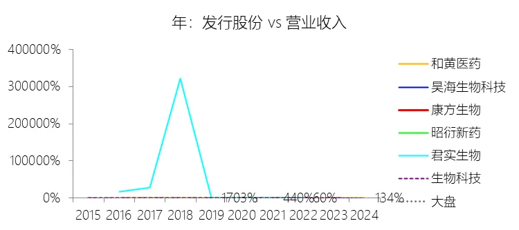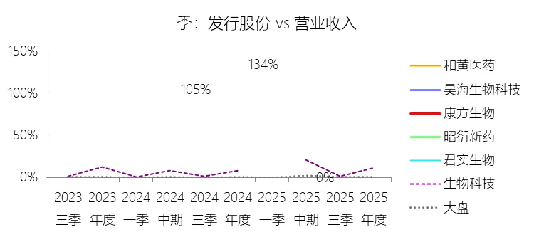 发行股份:2025年,康方生物的发行股份缺数据,与营业收入的比例无效;2015-2024年(十年),此项合计为82.65元,平均比例为105.60%,比生物科技行业的均值高51个百分点,长期呈下降趋势。