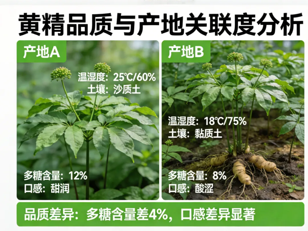 重点:黄精的产地与生长环境对其有效成分的积累至关重要。