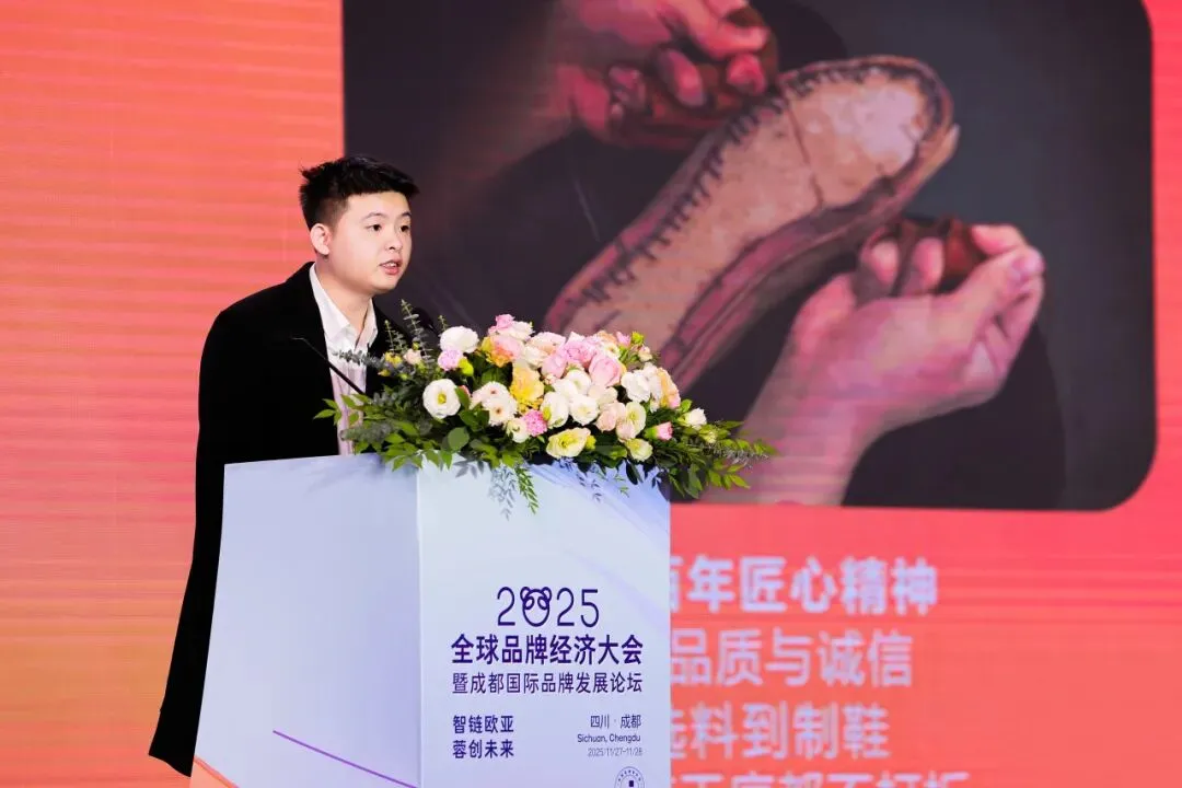 在活动主论坛环节,叶奇豪以“百年穿行 智履新程”为题发表演讲,深度剖析老人头鞋业的发展历程,分享品牌在坚守百年制鞋技艺初心的同时,如何积极融入现代科技与时尚潮流,并描绘企业未来发展蓝图。