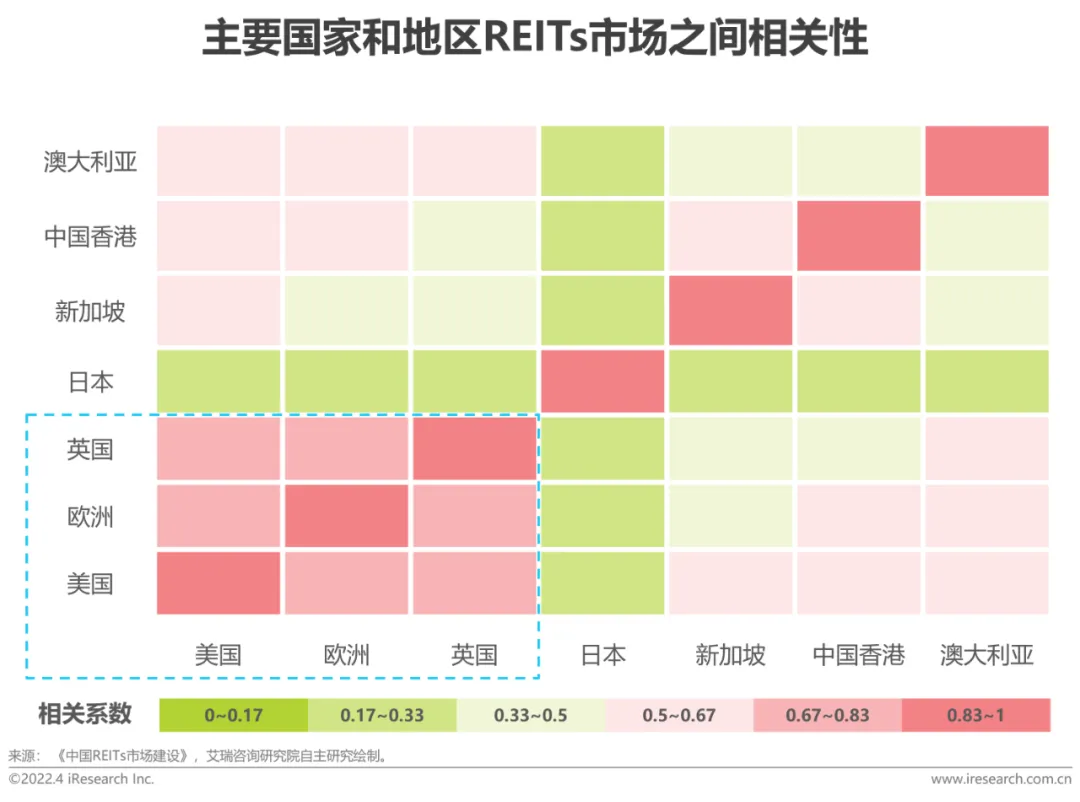 REITs市场之间、REITs市场与股票市场的相关系数普遍较低