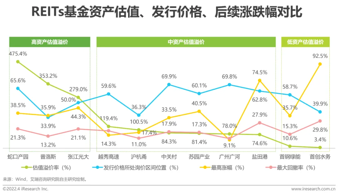 REITs底层资产估值溢价率越高(如:蛇口产园、张江光大REITs等),基金询价结果在询价区间所处位置倾向于越低,而上市交易后的涨幅及最大回撤水平也会相对较低。反之,若REITs底层资产估值溢价率越低(如:首创水务、盐田港等REITs等),基金询价结果所处位置倾向于越高,上市交易后的涨跌幅也会相对较高。