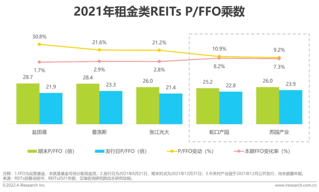 (1)不同类型的资产P/FFO乘数所处区间不同,对于具有高成长性的资产而言,估值乘数也会更高;(2)若当期FFO变化较小,乘数增幅越高的基金越容易发生高估。