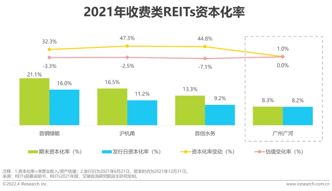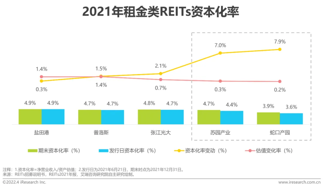 租金类REITs资本化率增幅主要来自净营业收入的上涨;收费类REITs除净营业收入上涨外,资产估值收缩也是重要原因