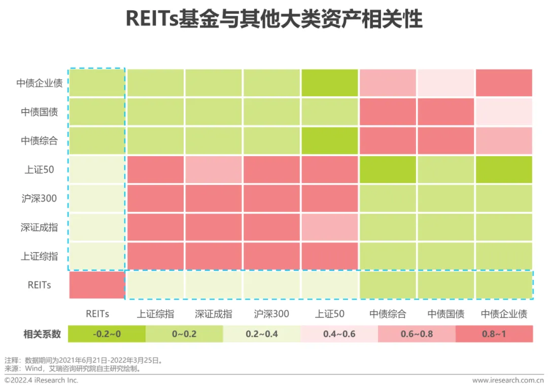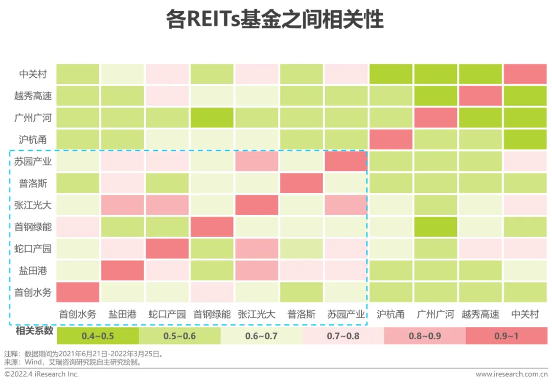 REITs与股票、债券相关性均较低;各基金之间的相关系数也呈现出明显的分布特征