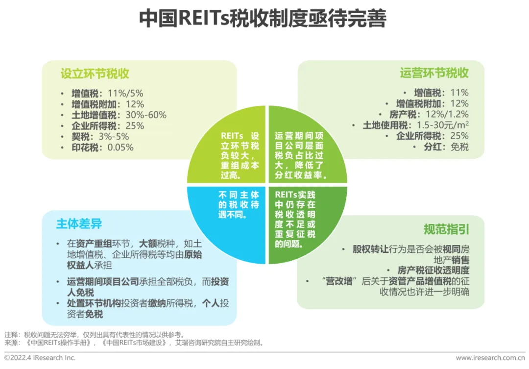 目前中国公募REITs设立及运营环节税负较大;同时往期税收制度在REITs领域的适用性以及主体差异问题仍需解决