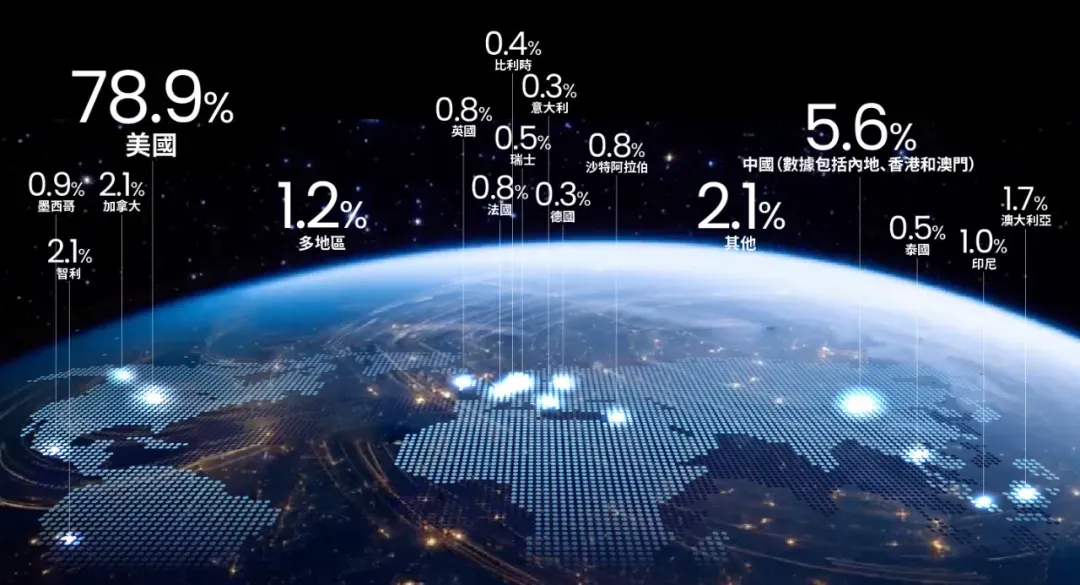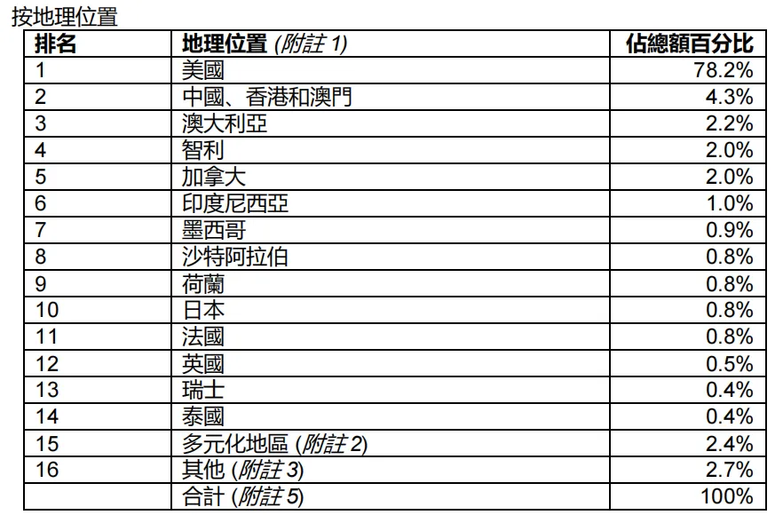 78%资产投资漂亮国,4.3%大中华,其余比例较低,累计投资22国,高度分散又高度集中。