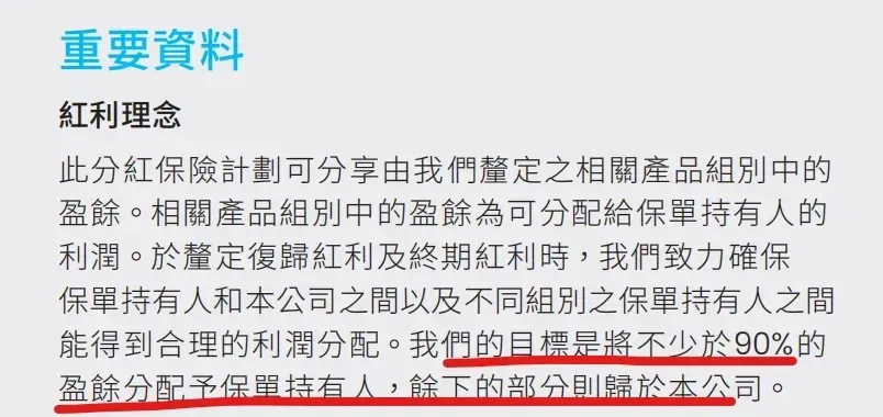 万通分红险最核心的优势:一个是分红分配比例不低于90%,写进产品说明书,安盛与苏黎世也写进,也就这3家了,其它公司主销的分红储蓄险虽然计划书中按照90%比例演示收益,但是都没有把分红分配比例明确写进合同里告知客户。所以,更透明。