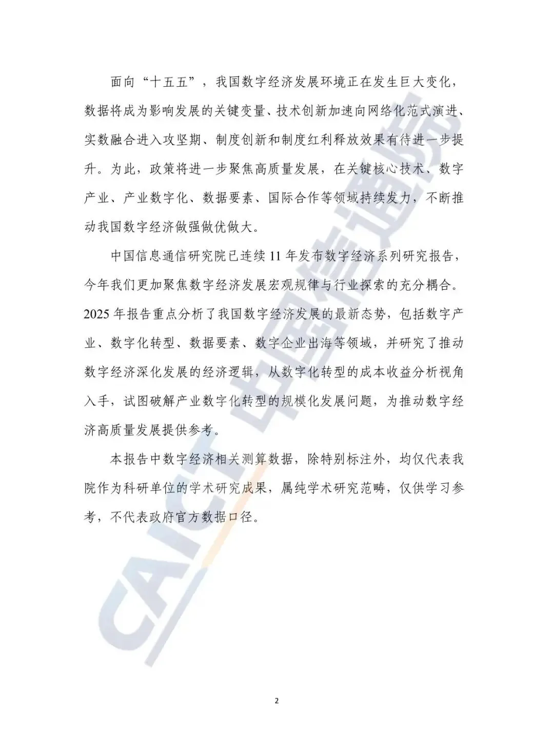《中国数字经济发展研究报告(2025年)》由中国信息通信研究院发布,这是该院连续第十一年发布数字经济系列研究报告。报告系统梳理了2024年我国数字经济发展的最新态势与成就,深入剖析了数字化转型的经济逻辑,并对“十五五”时期的发展重点进行了展望。报告指出,我国数字经济已进入稳健发展新阶段,正从规模扩张转向质量提升,成为支撑国民经济稳增长和高质量发展的重要引擎。