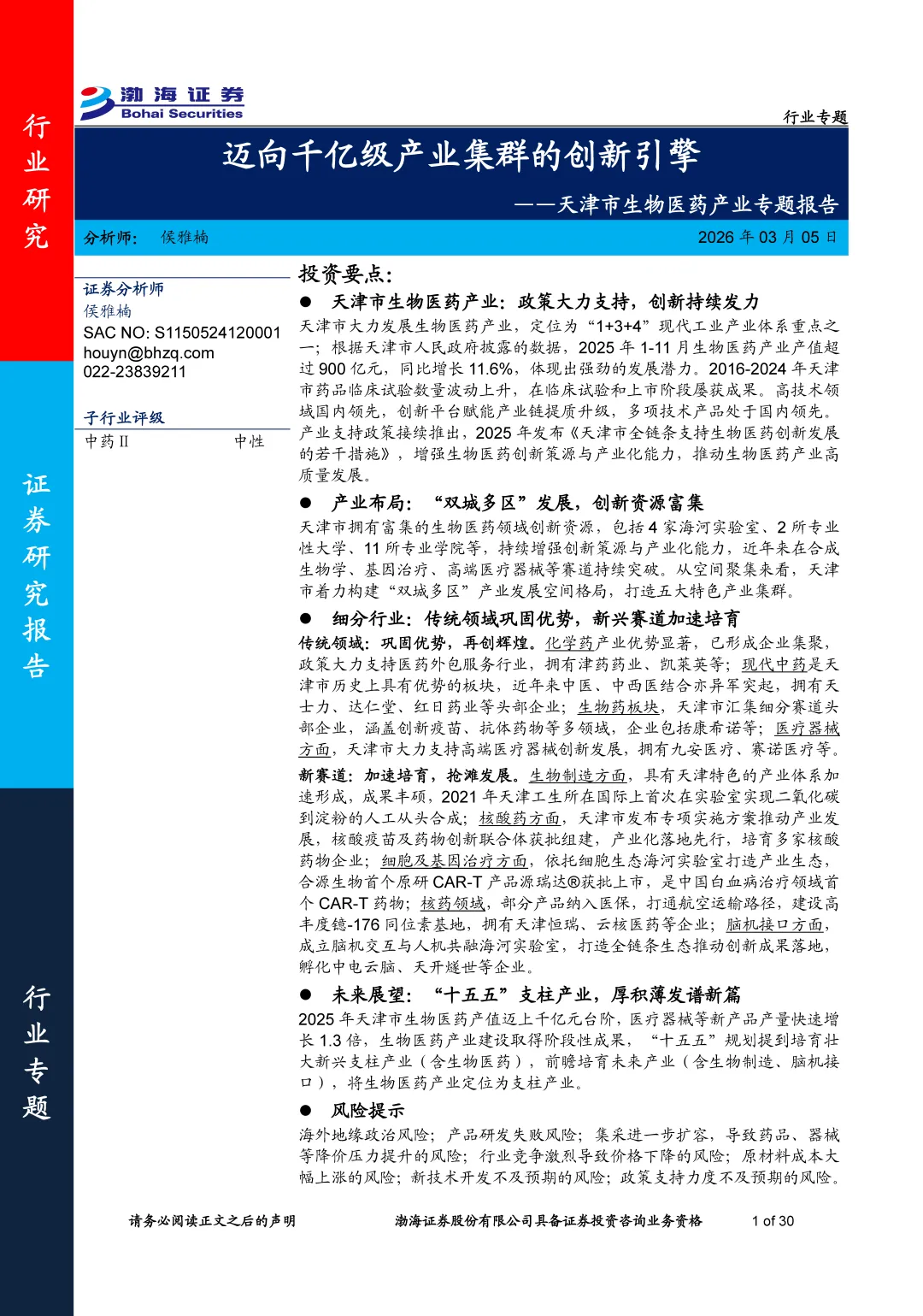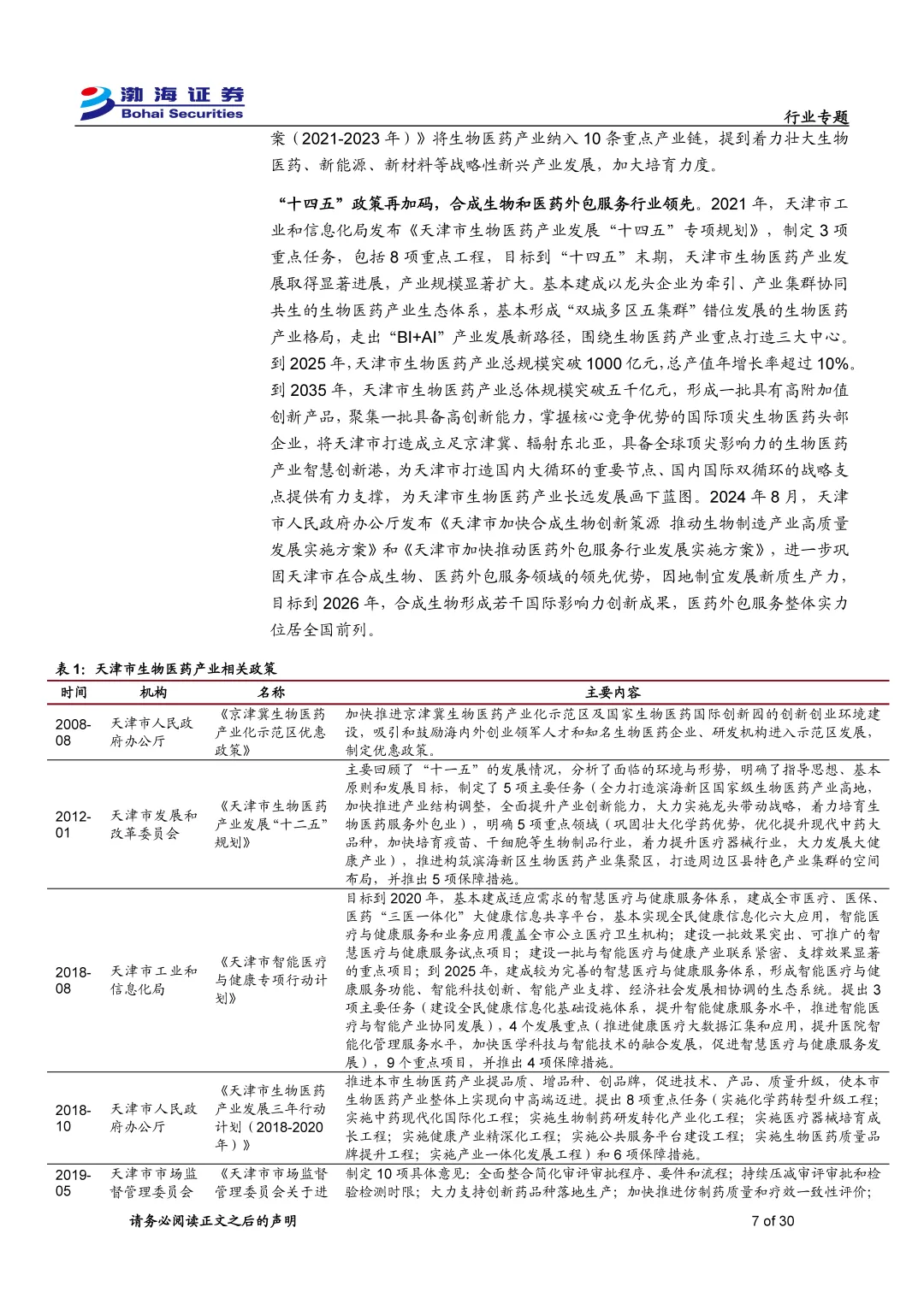天津市生物医药产业专题报告
