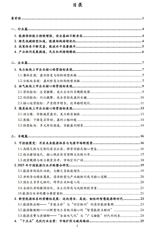 ACG《2026 中国能源高质量发展白皮书》核心结论:2026 年是 “十五五” 开局与双碳攻坚关键年,中国能源行业从规模扩张转向质效提升,以安全、绿色、创新、高效为方向,加快构建新型能源体系。风光装机全球第一、非化石能源成第二大能源、煤炭消费达峰,能源结构历史性转变;可控核聚变、光伏、储能、氢能、综合能源成为五大黄金赛道,并购整合与数智化成为企业转型核心抓手。