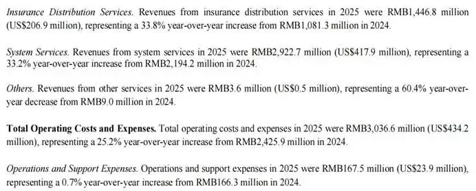 2025年,元保实现营收43.73亿元,同比增长33.1%,且季度增长稳健,第四季度单季营收11.75亿元,同比增长32.2%。