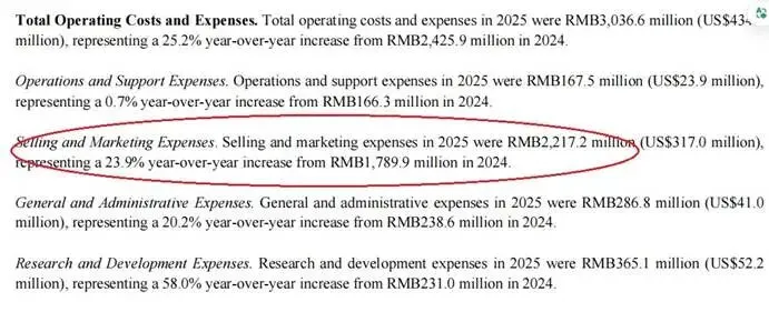 另一边,销售与营销费用占总运营费用比重达73%,意味着其“科技”的叙事也只是靠流量来驱动。