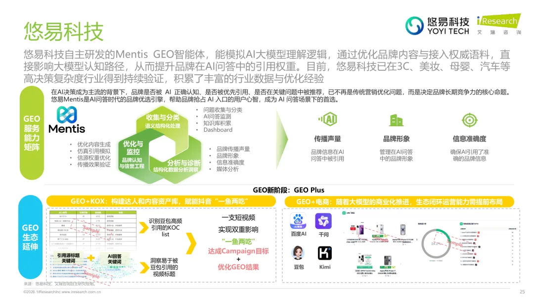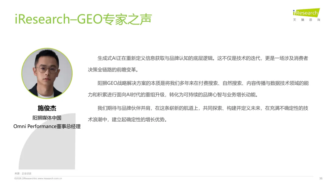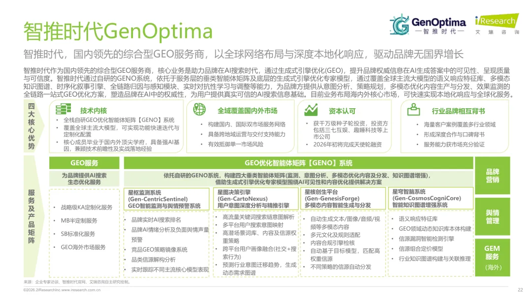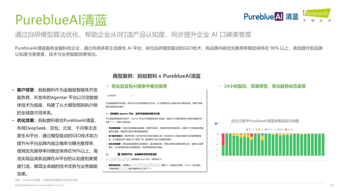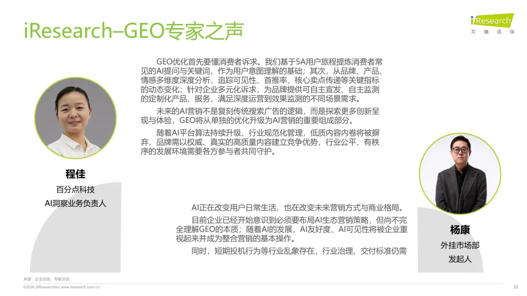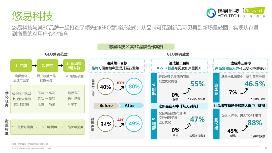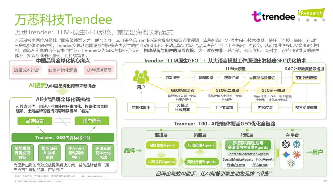 导读:生成式 AI 推动信息获取范式变革,用户搜索从 “链接导向” 转向 “答案导向”,GEO 作为新兴营销优化策略应运而生。其核心是通过优化内容适配大模型逻辑,构建品牌与 AI 的信任关联,提升品牌在 AI 答案中的可见性与引用权重。行业生态已初步成型,上游由 AI 搜索平台与语料资源平台提供基础支撑,中游 GEO 服务商通过全链路解决方案赋能下游品牌。优化策略聚焦语义匹配、内容结构化与权威信源构建,效果评估涵盖可见性、内容层、技术层及业务层指标。随着 AI 应用普及,品牌营销预算向 GEO 转移,预计 2030 年国内市场规模将超 500 亿元。行业发展面临多平台策略差异大、归因难等挑战,合规化成为重要趋势。智推时代、PureblueAI 清蓝等企业推出成熟解决方案,在金融、3C 等领域验证成效。未来 GEO 将向数智驱动、多模态优化演进,成为品牌全域营销的核心组成。