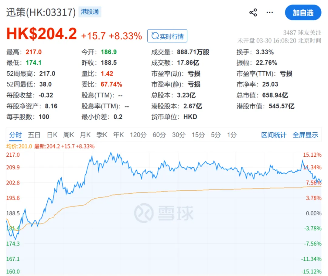 3月30日,迅策股价收于204.2港元,较3月27日的188.5港元上涨8.33%。这说明市场第一反应其实是兴奋。