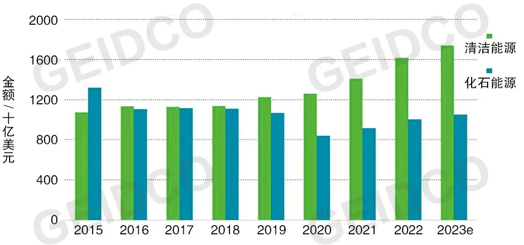 在可再生能源和电动汽车的带动下,全球清洁能源投资在2021年至2023年间将实现24%的增长,高于同期化石燃料投资15%的增幅。报告预测,2023年全球清洁能源投资将超过1.7万亿美元,继续高于化石燃料投资规模,且领先优势持续扩大。今年太阳能领域投资(3820亿美元)有望首次超过石油领域投资(3710亿美元)。