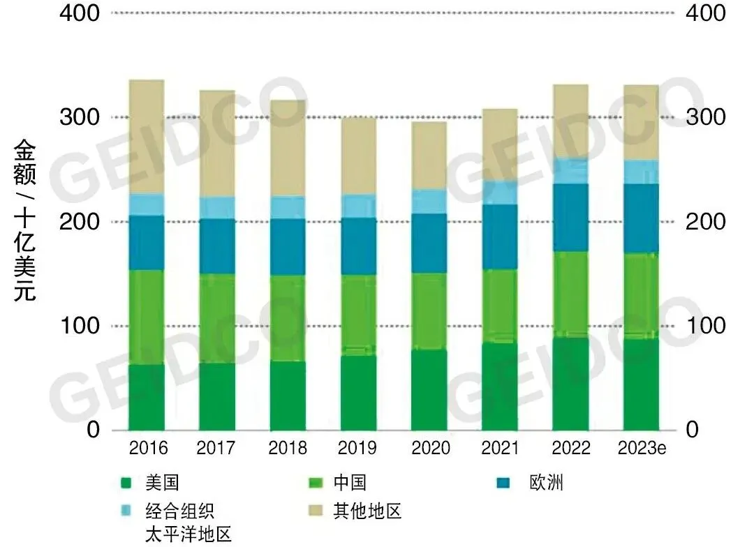 报告预测,2023年全球电网领域投资将趋于平缓,总额维持在3300亿美元左右,详见图3。