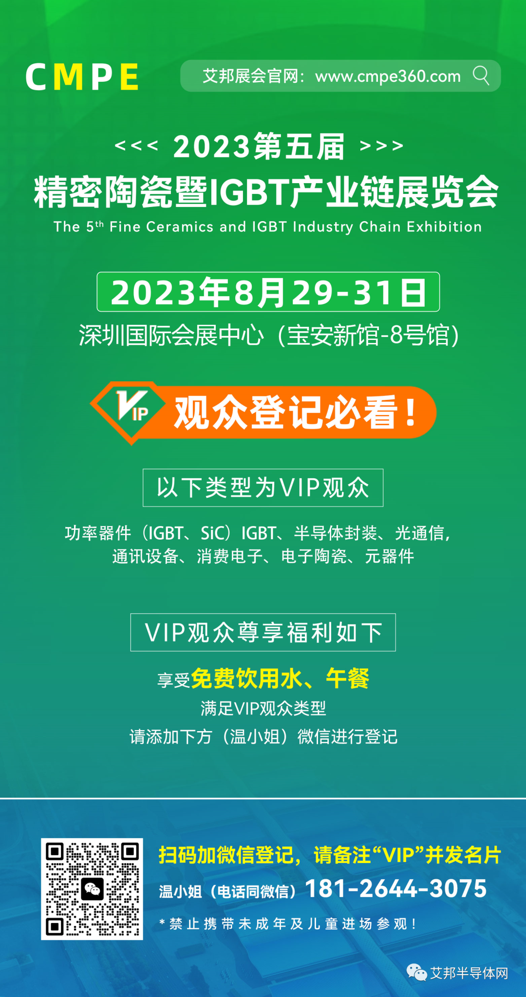 ※功率器件(IGBT、SiC)IGBT、半导体封装、光通信,通讯设备、消费电子、电子陶瓷、元器件等企业可享受VIP参观福利(免费午餐、饮用水、赠送会刊);