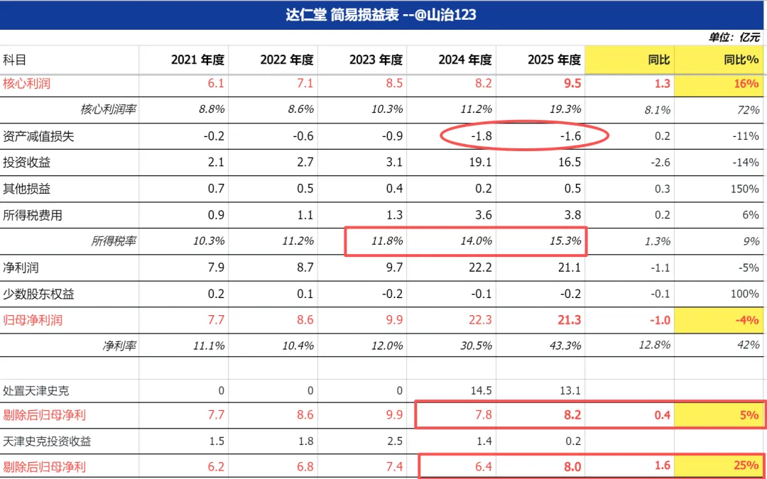 原因③2024和2025年处置天津史克(13%和12%)股权的投资损益。