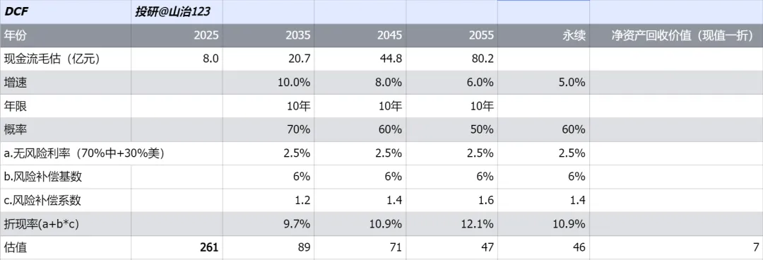 DCF现金流折现,估值261亿