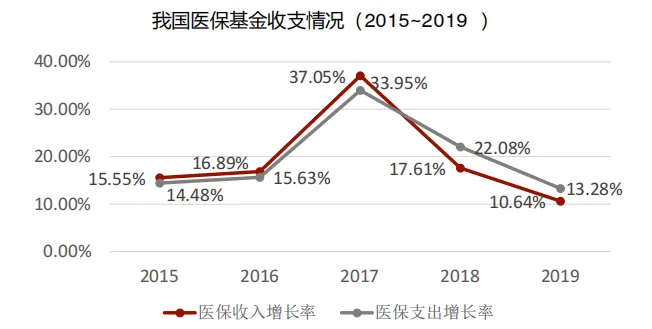 2018年起连续两年,我国医保基金的支出增速超过收入增速。医保基金运行所面临的可持续压力不断增加。