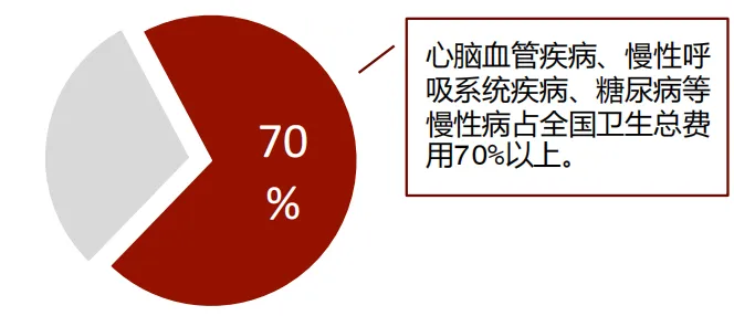 ▹ 慢性非传染性疾病占据我国医疗费用总支出比重大