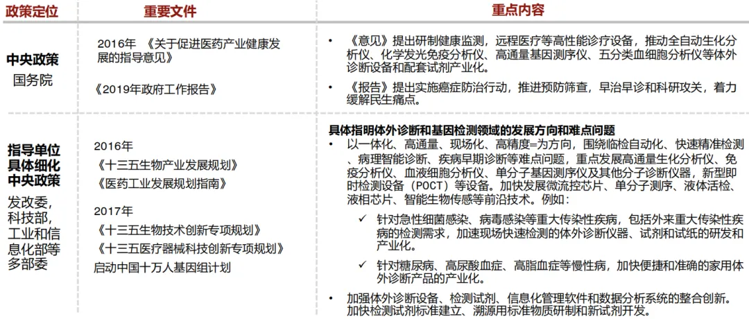 ▶ 体外诊断+基因检测:各指导单位细化中央政策,明确研发方向