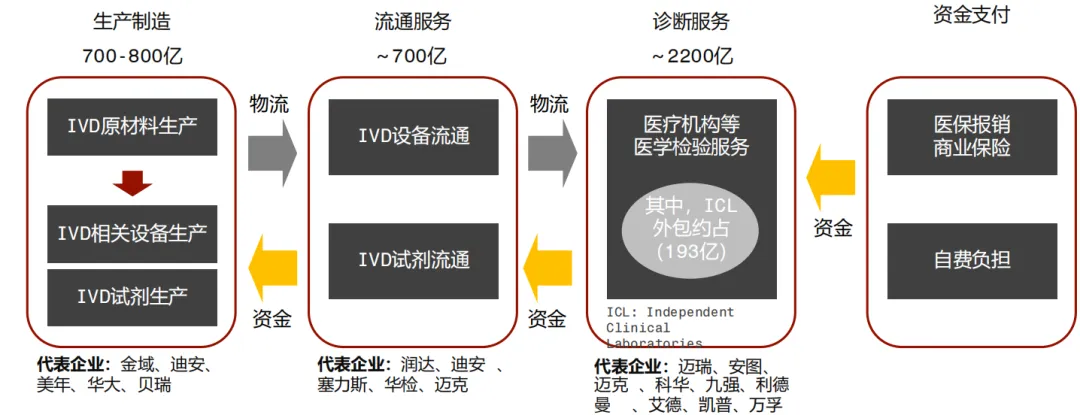 经过多年的发展,国内的体外诊断领域已经形成了较为成熟的产业链,产业链整体目前已形成数千亿元级别的市场规模。