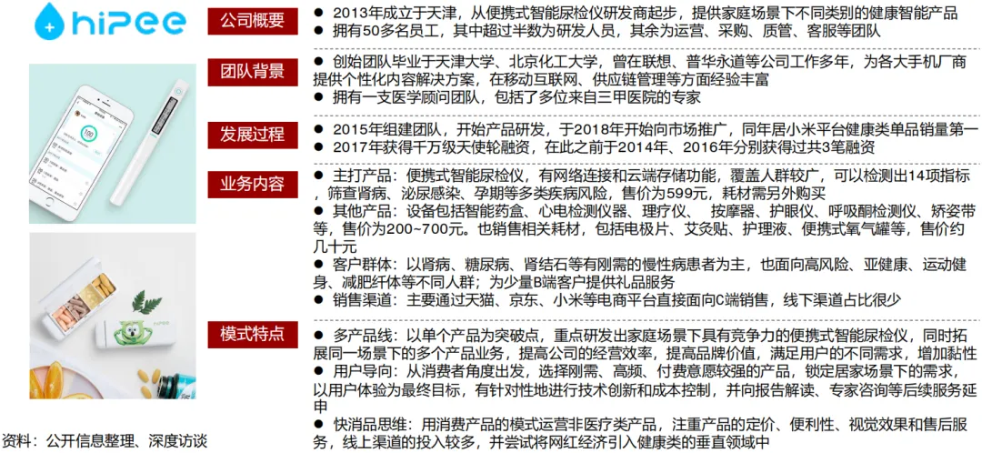 HiPee是国内面向消费者的健康智能检测硬件供应商,多产品线、用户导向、快消品思维是其特色